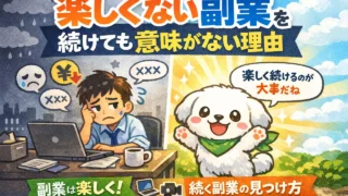 楽しく稼ぐ楽しくない副業を続けても意味がない理由|続く副業の見つけ方 「副業を始めたけど、正直つまらない…」そんなふうに感じながらも「お金のためだから仕方ない」と我慢していませんか?実は、楽しくない副業を続けても成果は出にくいと言われています。なぜなら、副業は会社の仕事とは違い自分の意思で続けるものだからです... 2026.03.06楽しく稼ぐ